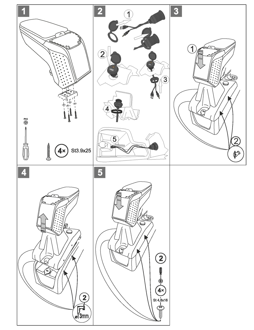 Podłokietnik Armster 3, Ford Connect II, 2018-2023, USB+AUX