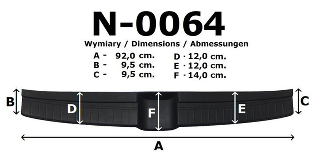 Listwa ochronna bagażnika jest produkowana z czarnego plastiku ABS charakteryzującego się wielką odpornością przeciw uszkodzeniom oraz otarciom. Prosty montaż listwy za pomocą taśmy obustronnej, która jest zawartością zestawu.