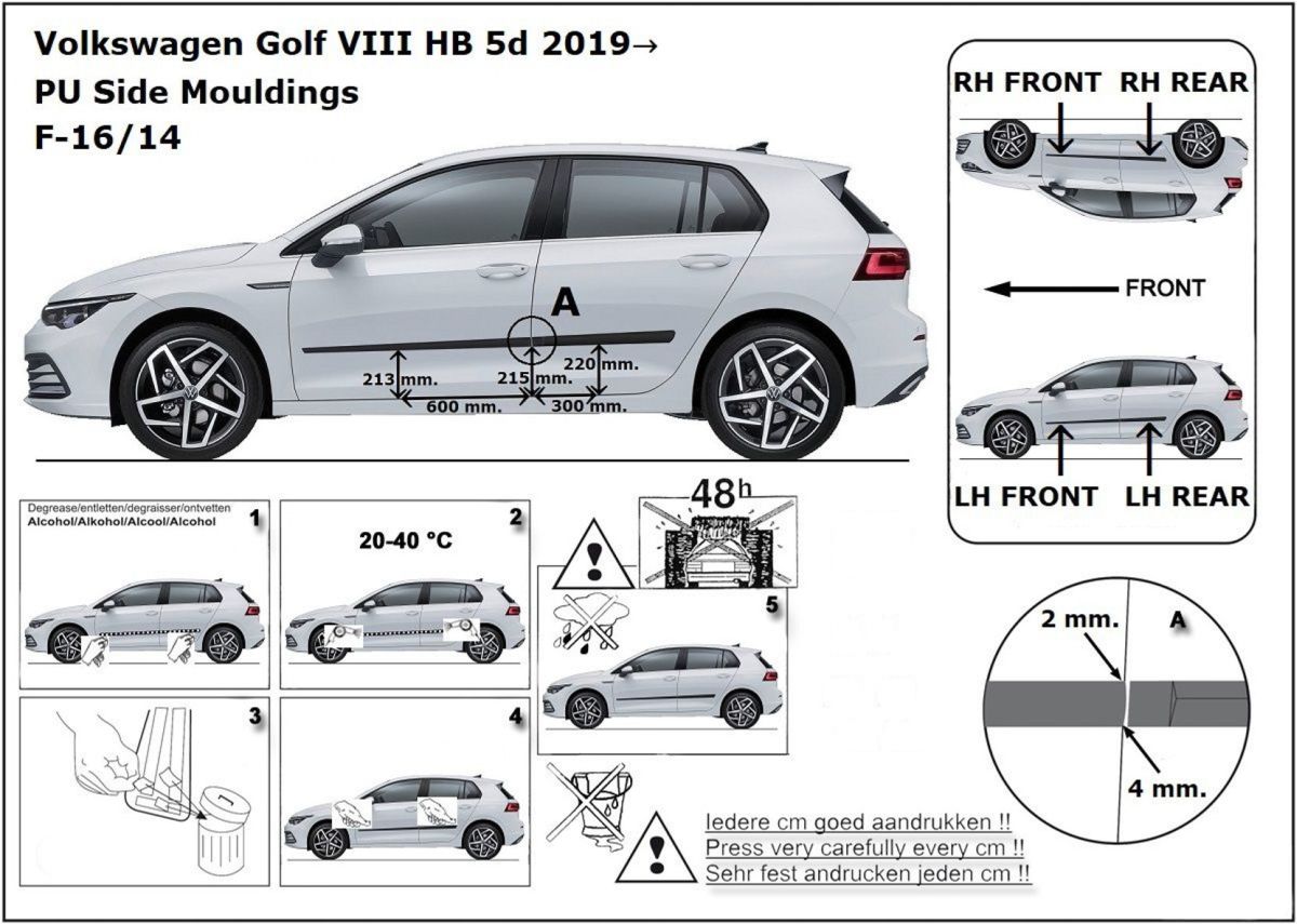 Listwy boczne na drzwi ochronne, VW Golf VIII, 2019- , Hatchback