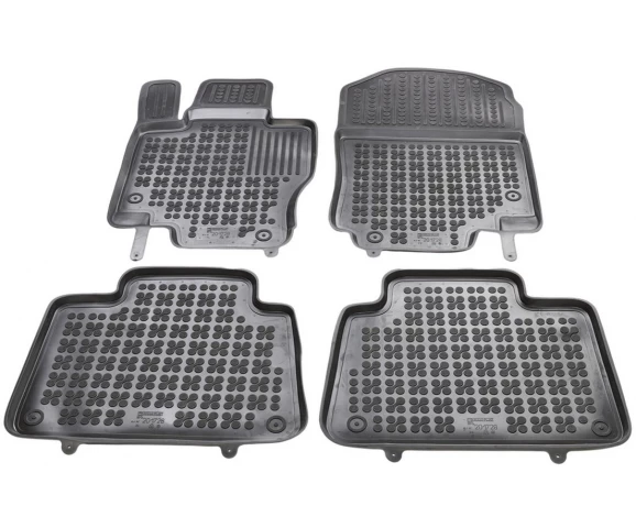 Przednie dywaniki są nawet wyposażone w miejsca na fabryczne stopery, które są zawarte w pakiecie. Dzięki stoperom można dywanik przymocować do podłogi samochodu i zapobiec suwaniu się dywanu. Dywaniki gumowe od producenta Rezaw-Plast mają nowoczesny design i produkowane są w Polsce. Wysokiej jakości materiał TPE nie wydziela nieprzyjemnego zapachu.