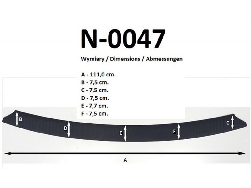 Listwa ochronna bagażnika jest produkowana z czarnego plastiku ABS charakteryzującego się wielką odpornością przeciw uszkodzeniom oraz otarciom. Prosty montaż listwy za pomocą taśmy obustronnej, która jest zawartością zestawu.