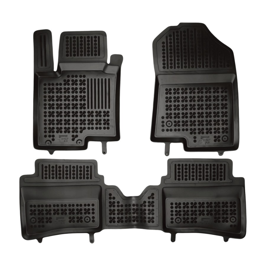 Przednie dywaniki są nawet wyposażone w miejsca na fabryczne stopery, które są zawarte w pakiecie. Dzięki stoperom można dywanik przymocować do podłogi samochodu i zapobiec suwaniu się dywanu. Dywaniki gumowe od producenta Rezaw-Plast mają nowoczesny design i produkowane są w Polsce. Wysokiej jakości materiał TPE nie wydziela nieprzyjemnego zapachu.