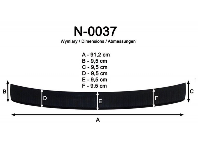 Listwa ochronna bagażnika jest produkowana z czarnego plastiku ABS charakteryzującego się wielką odpornością przeciw uszkodzeniom oraz otarciom. Prosty montaż listwy za pomocą taśmy obustronnej, która jest zawartością zestawu.