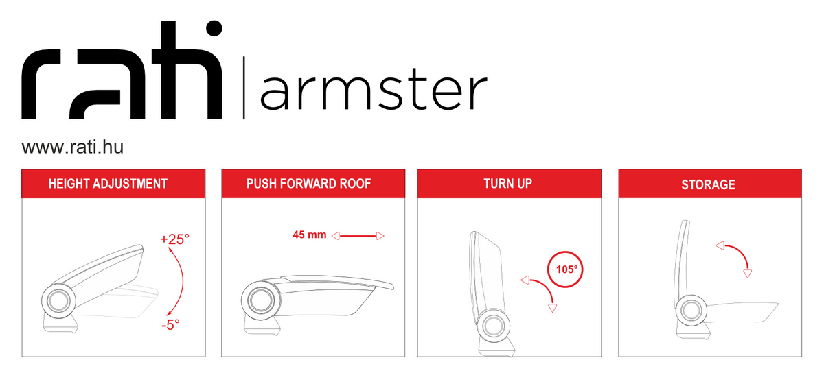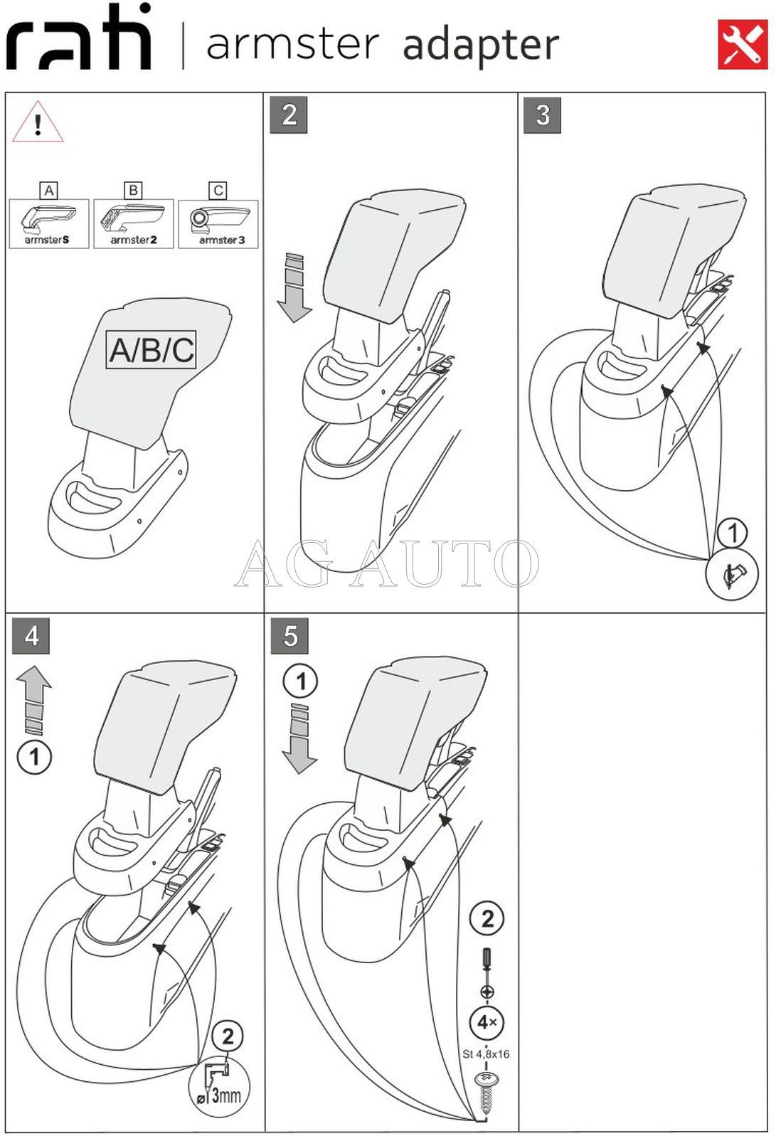 Adapter jest częścią opakowania i pasuje do powyższego pojazdu. W zestawie wkręty oraz instrukcja montażu. Podłokietnik oferuje praktyczny schowek dla telefonu komórkowego, portfela, kosztowności itp. Metalowa mechanika do ustawiania wysokości.