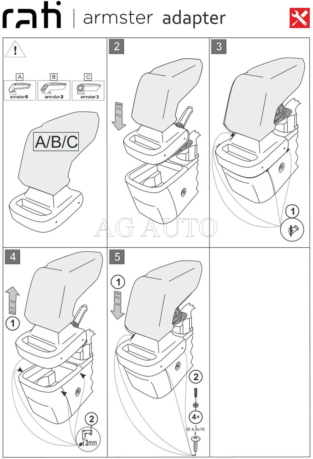 Adapter jest częścią opakowania i pasuje do powyższego pojazdu. W zestawie wkręty oraz instrukcja montażu. Podłokietnik oferuje praktyczny schowek dla telefonu komórkowego, portfela, kosztowności itp. Metalowa mechanika do ustawiania wysokości.