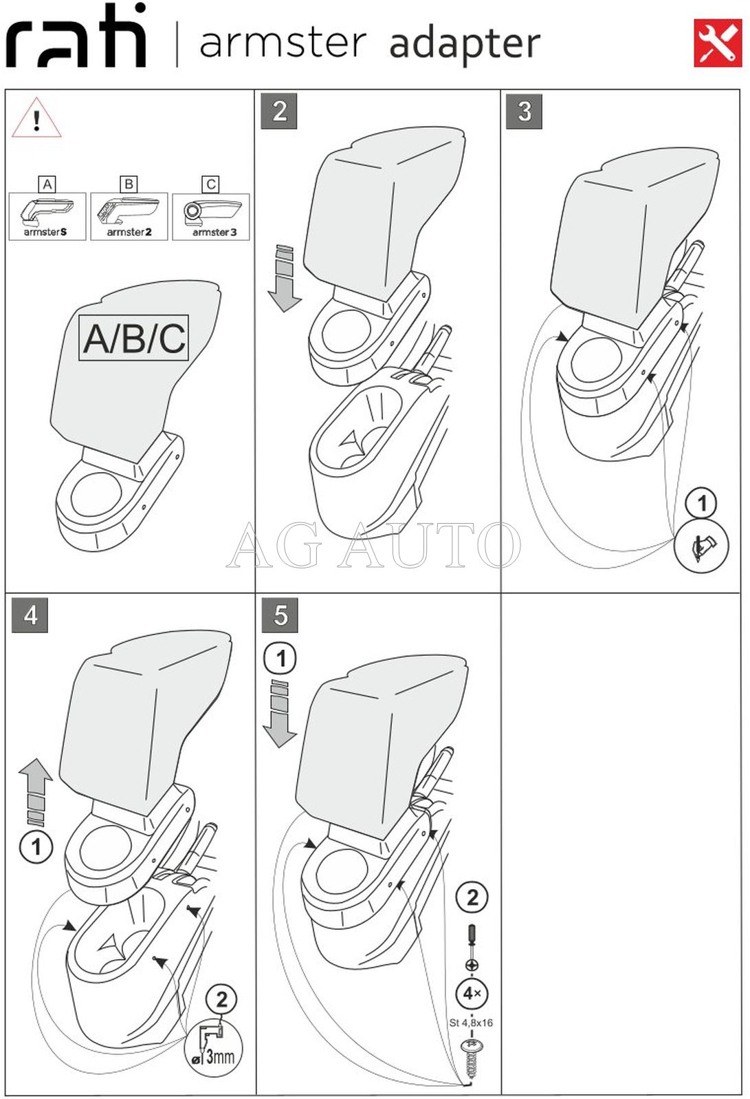 Adapter jest częścią opakowania i pasuje do powyższego pojazdu. W zestawie wkręty oraz instrukcja montażu. Podłokietnik oferuje praktyczny schowek dla telefonu komórkowego, portfela, kosztowności itp. Metalowa mechanika do ustawiania wysokości.