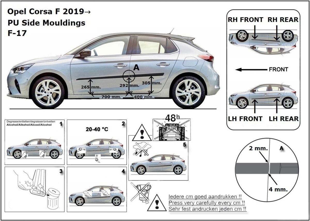 Listwy boczne na drzwi ochronne, Opel Corsa F, 2019- ,