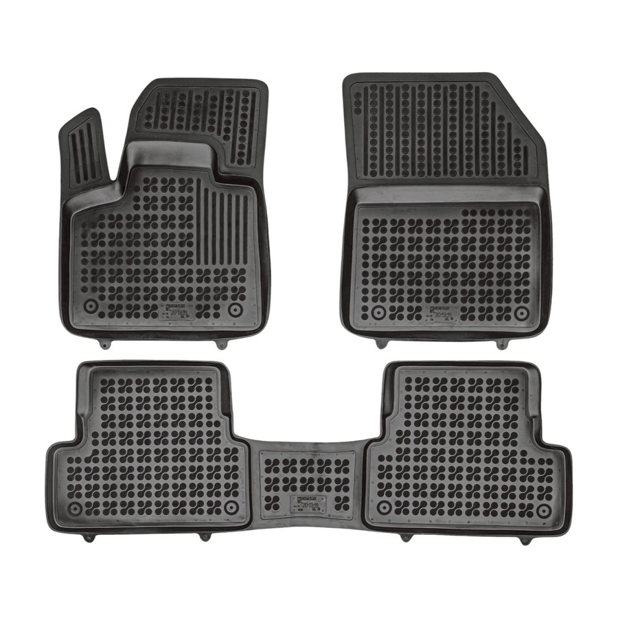 Przednie dywaniki są nawet wyposażone w miejsca na fabryczne stopery, które są zawarte w pakiecie. Dzięki stoperom można dywanik przymocować do podłogi samochodu i zapobiec suwaniu się dywanu. Dywaniki gumowe od producenta Rezaw-Plast mają nowoczesny design i produkowane są w Polsce. Wysokiej jakości materiał TPE nie wydziela nieprzyjemnego zapachu.