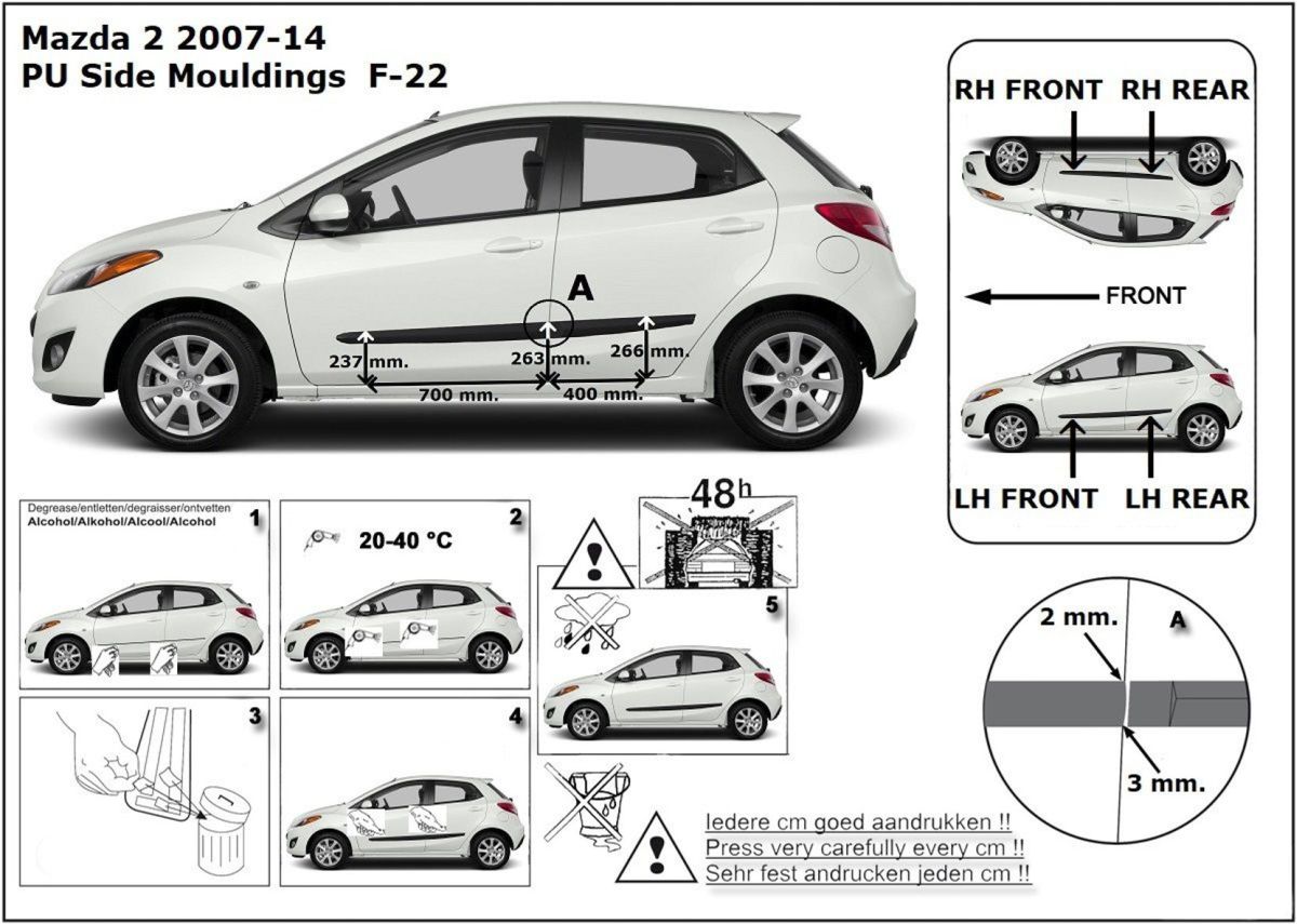 Listwy boczne na drzwi ochronne, Mazda 2 III, 2007-2010