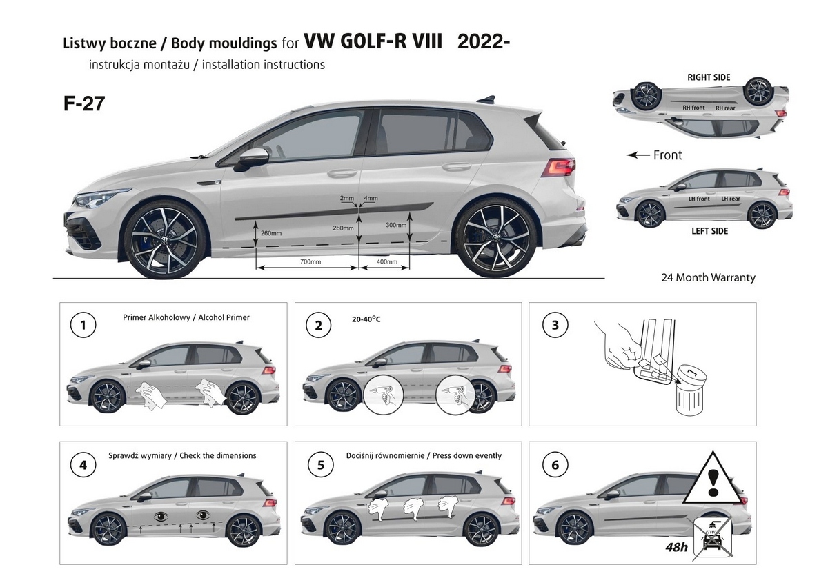 Listwy boczne na drzwi ochronne, Golf VIII R, 2021- ,