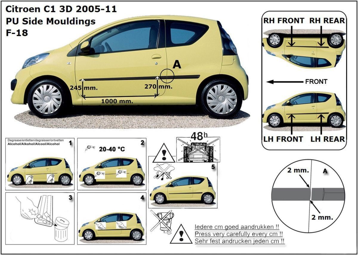 Listwy boczne na drzwi ochronne, Citroen C1, 2005->2011, 3 dwrz.