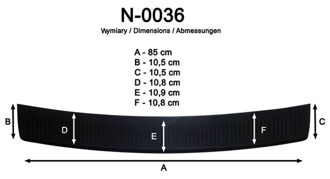 Listwa ochronna bagażnika jest produkowana z czarnego plastiku ABS charakteryzującego się wielką odpornością przeciw uszkodzeniom oraz otarciom. Prosty montaż listwy za pomocą taśmy obustronnej, która jest zawartością zestawu.