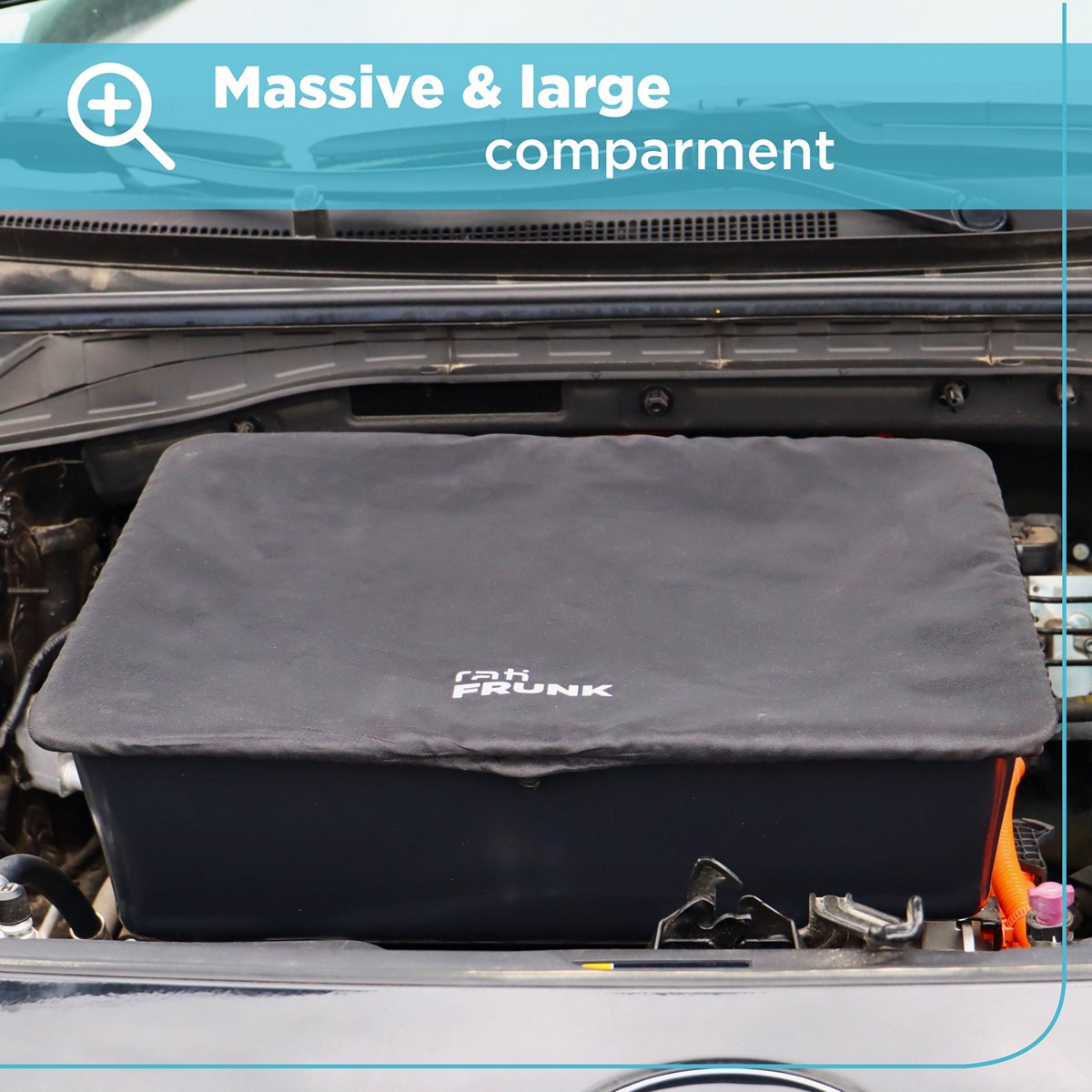 - Elastyczna górna pokrywa chroniąca przedmioty przechowywane we Frunk