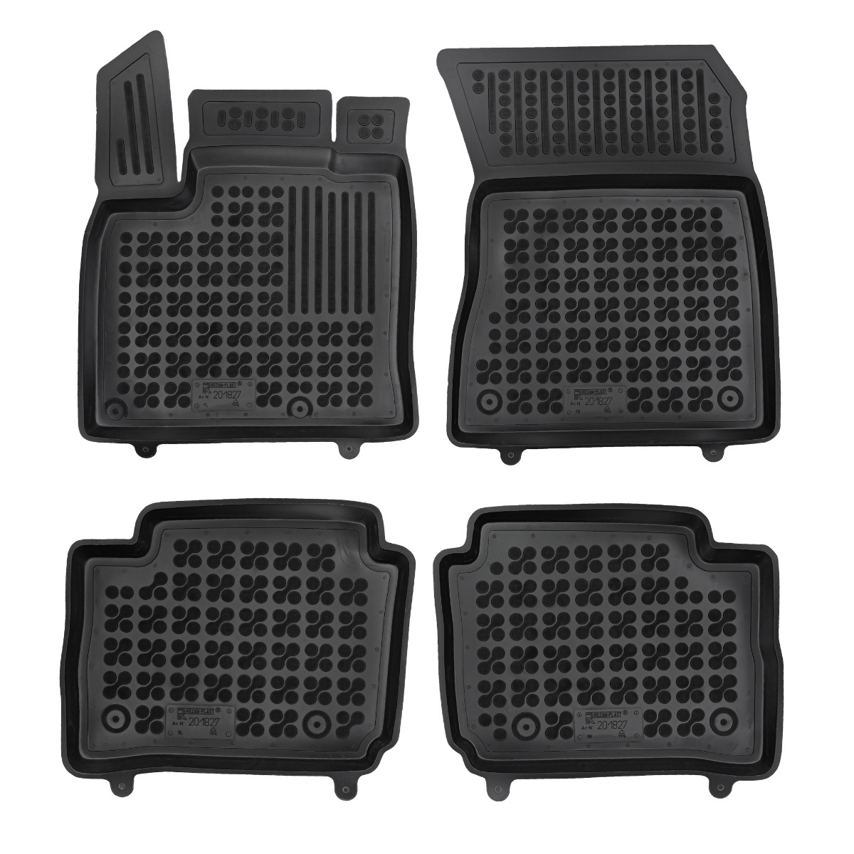 Przednie dywaniki są nawet wyposażone w miejsca na fabryczne stopery, które są zawarte w pakiecie. Dzięki stoperom można dywanik przymocować do podłogi samochodu i zapobiec suwaniu się dywanu. Dywaniki gumowe od producenta Rezaw-Plast mają nowoczesny design i produkowane są w Polsce. Wysokiej jakości materiał TPE nie wydziela nieprzyjemnego zapachu.