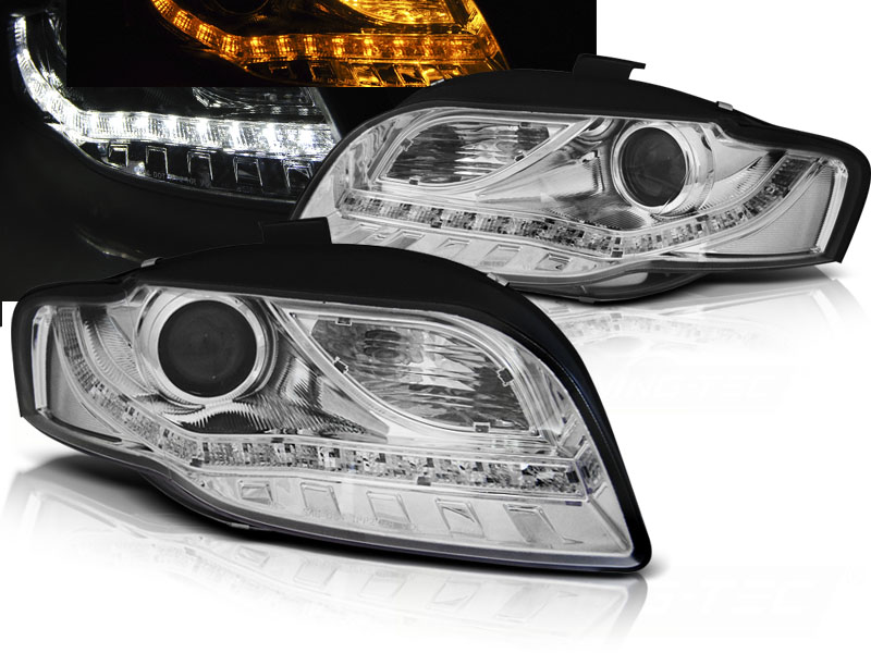 Lampy przednie, Audi A4, B7, 2004-2008, Hi-Low, Chrom