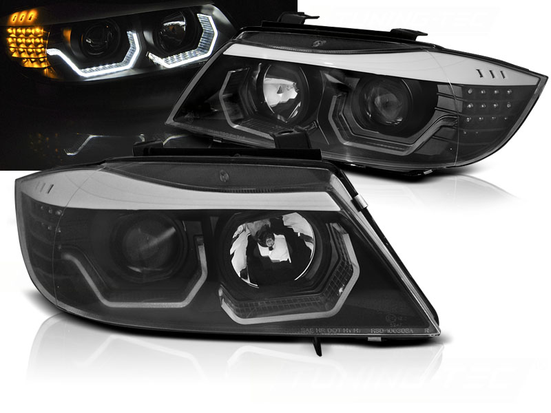 Lampy przednie, BMW 3, E90/E91, 2005-2008, Angel Eyes, 3D LED, Black
