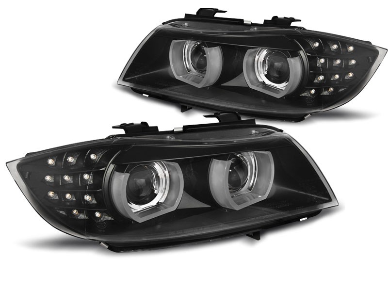 Lampy przednie, BMW 3, E90/E91, 2005-2008, Angel Eyes, 3D LED, Black