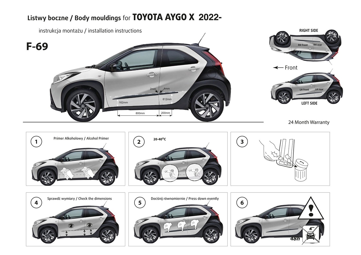 Listwy boczne na drzwi ochronne, Toyota Aygo X, 2022- ,