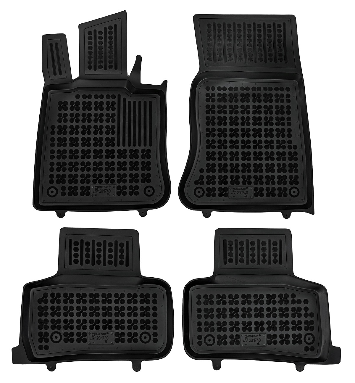 Przednie dywaniki są nawet wyposażone w miejsca na fabryczne stopery, które są zawarte w pakiecie. Dzięki stoperom można dywanik przymocować do podłogi samochodu i zapobiec suwaniu się dywanu. Dywaniki gumowe od producenta Rezaw-Plast mają nowoczesny design i produkowane są w Polsce. Wysokiej jakości materiał TPE nie wydziela nieprzyjemnego zapachu.
