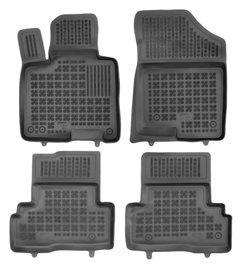 Przednie dywaniki są nawet wyposażone w miejsca na fabryczne stopery, które są zawarte w pakiecie. Dzięki stoperom można dywanik przymocować do podłogi samochodu i zapobiec suwaniu się dywanu. Dywaniki gumowe od producenta Rezaw-Plast mają nowoczesny design i produkowane są w Polsce. Wysokiej jakości materiał TPE nie wydziela nieprzyjemnego zapachu.