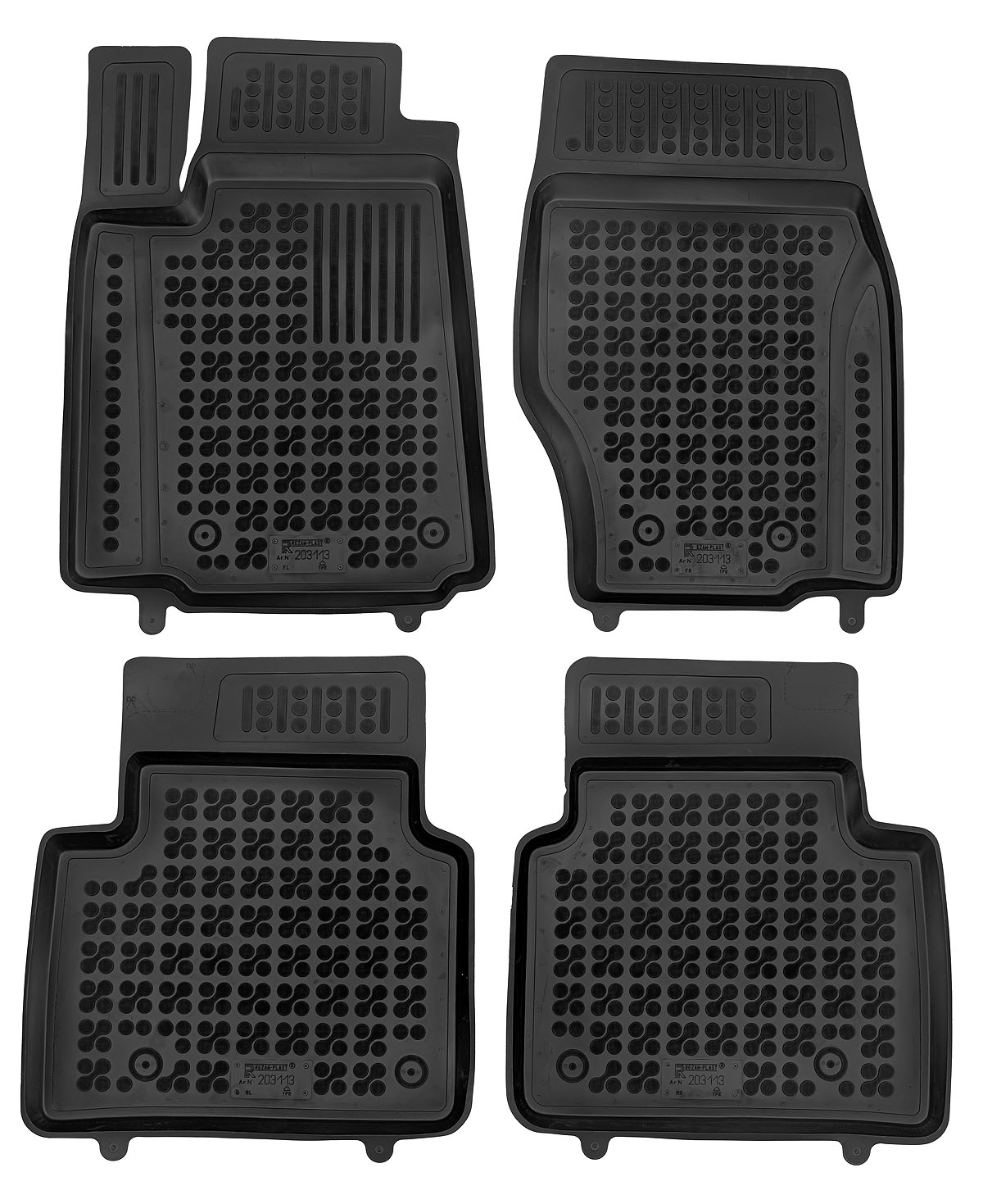 Przednie dywaniki są nawet wyposażone w miejsca na fabryczne stopery, które są zawarte w pakiecie. Dzięki stoperom można dywanik przymocować do podłogi samochodu i zapobiec suwaniu się dywanu. Dywaniki gumowe od producenta Rezaw-Plast mają nowoczesny design i produkowane są w Polsce. Wysokiej jakości materiał TPE nie wydziela nieprzyjemnego zapachu.