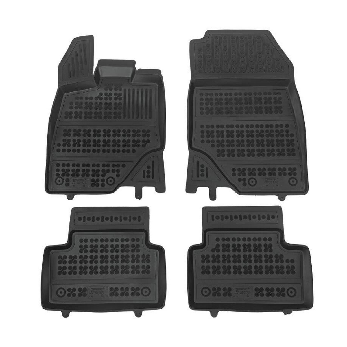 Przednie dywaniki są nawet wyposażone w miejsca na fabryczne stopery, które są zawarte w pakiecie. Dzięki stoperom można dywanik przymocować do podłogi samochodu i zapobiec suwaniu się dywanu. Dywaniki gumowe od producenta Rezaw-Plast mają nowoczesny design i produkowane są w Polsce. Wysokiej jakości materiał TPE nie wydziela nieprzyjemnego zapachu.