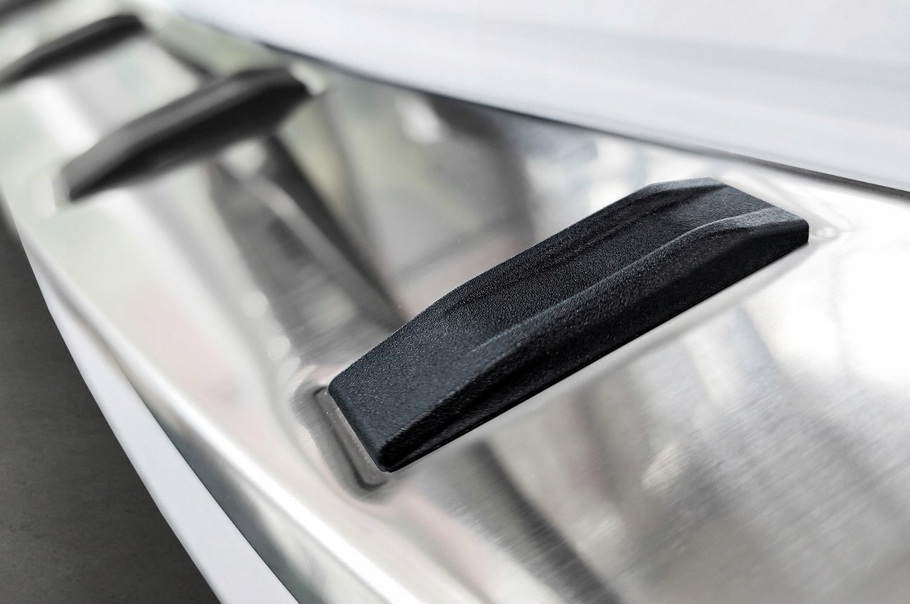 Do produkcji serii STRONG EDITION użyto mocnej i odpornej na zginanie stali o grubości 0,8 mm, co sprawia, że listwa jest grubsza i bardziej wytrzymała, zapewniając maksymalną ochronę. To doskonałe połączenie wysokiej jakości mocnej stali nierdzewnej z oryginalnym designem. Charakterystyczny element dekoracyjny w postaci żeberek, osadzonych w nakładce bazowej w żebrowanych rowkach, zachwyca swoim niepowtarzalnym wyglądem. Żeberka wykonane są z termoplastycznego poliuretanu EPAMOULD, który charakteryzuje się wysoką odpornością na odkształcenia i ponadprzeciętną trwałością.