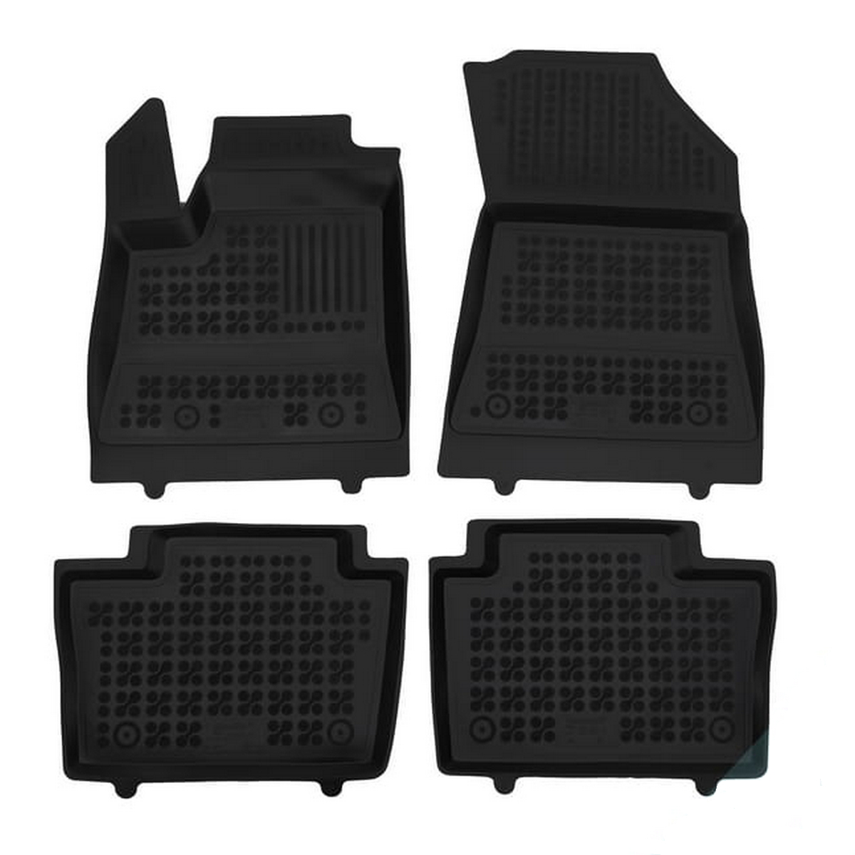 Przednie dywaniki są nawet wyposażone w miejsca na fabryczne stopery, które są zawarte w pakiecie. Dzięki stoperom można dywanik przymocować do podłogi samochodu i zapobiec suwaniu się dywanu. Dywaniki gumowe od producenta Rezaw-Plast mają nowoczesny design i produkowane są w Polsce. Wysokiej jakości materiał TPE nie wydziela nieprzyjemnego zapachu.