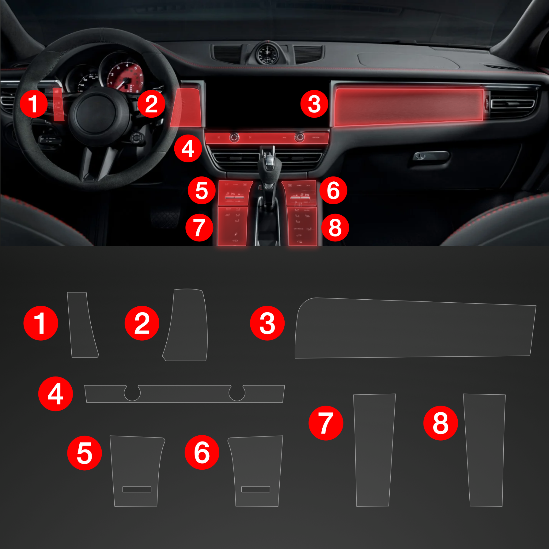 Folia ochronna wnętrza PianoSkin 8v1, Porsche Macan, 2021- ,