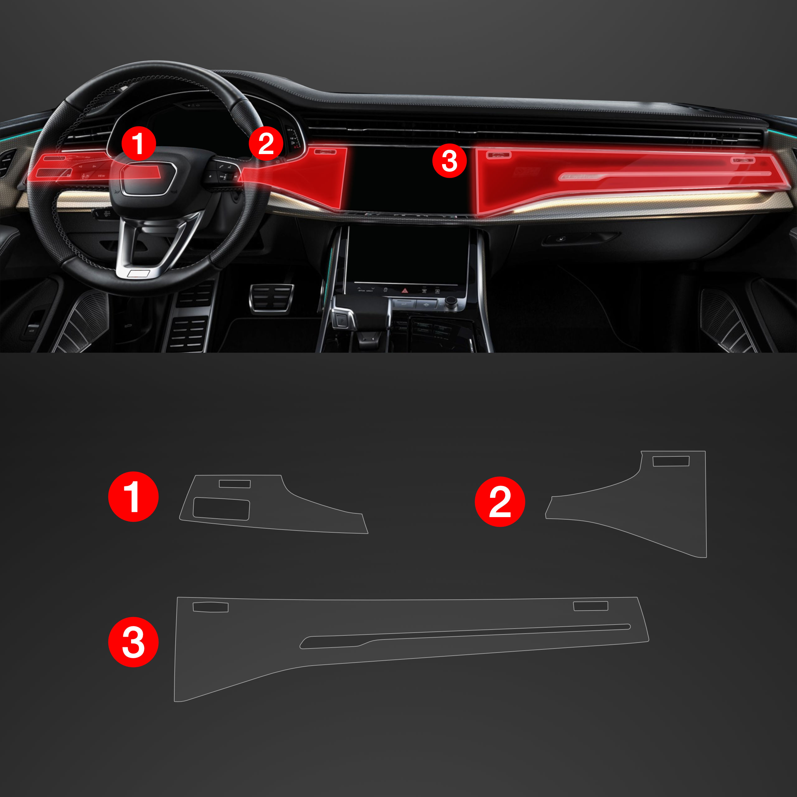 Folia ochronna wnętrza PianoSkin 3v1, Audi Q8, 2018- , Upper board