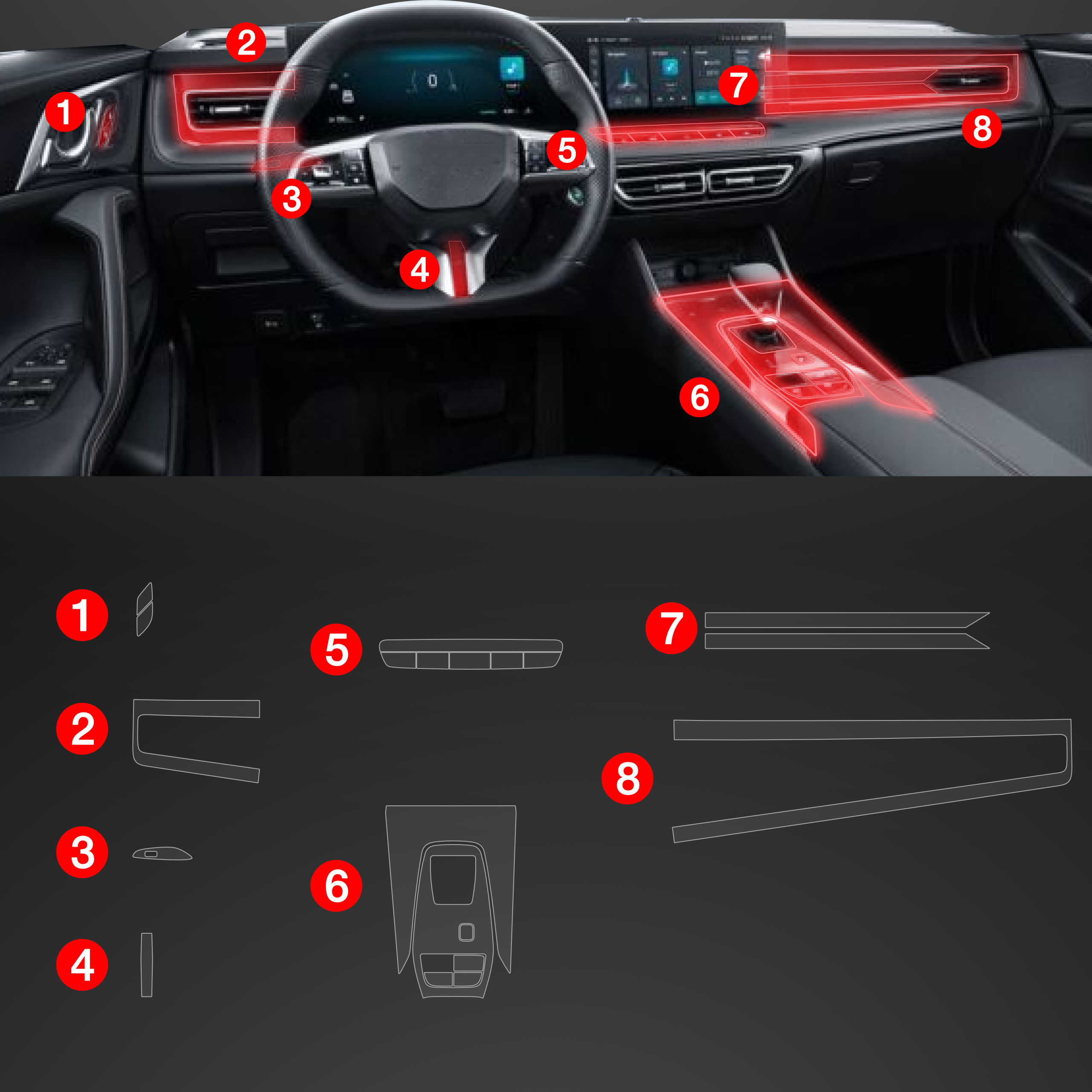 Folia ochronna wnętrza PianoSkin 8v1, MG HS II, 2024- ,