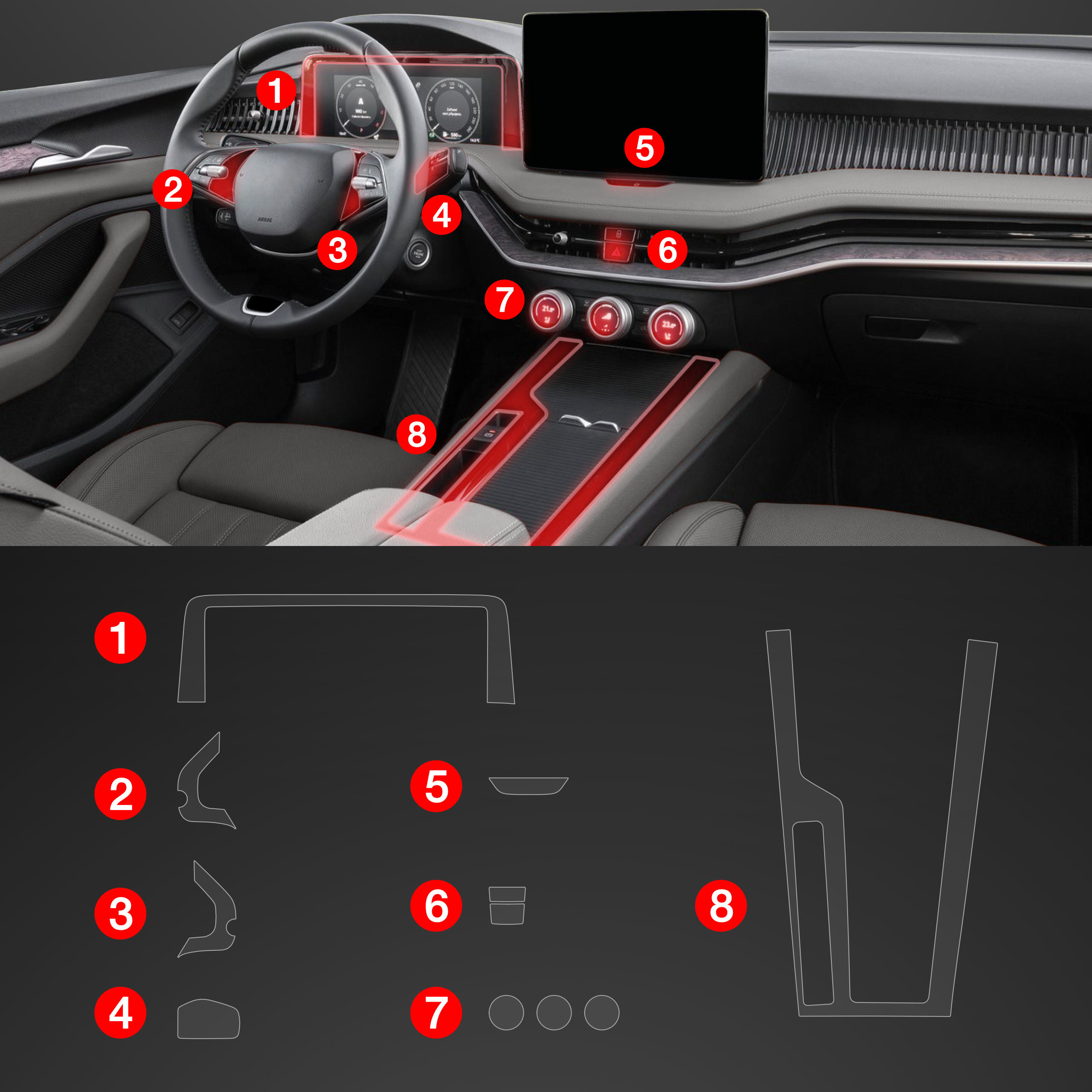Folia ochronna wnętrza PianoSkin 8v1, Škoda Superb IV, 2024- ,