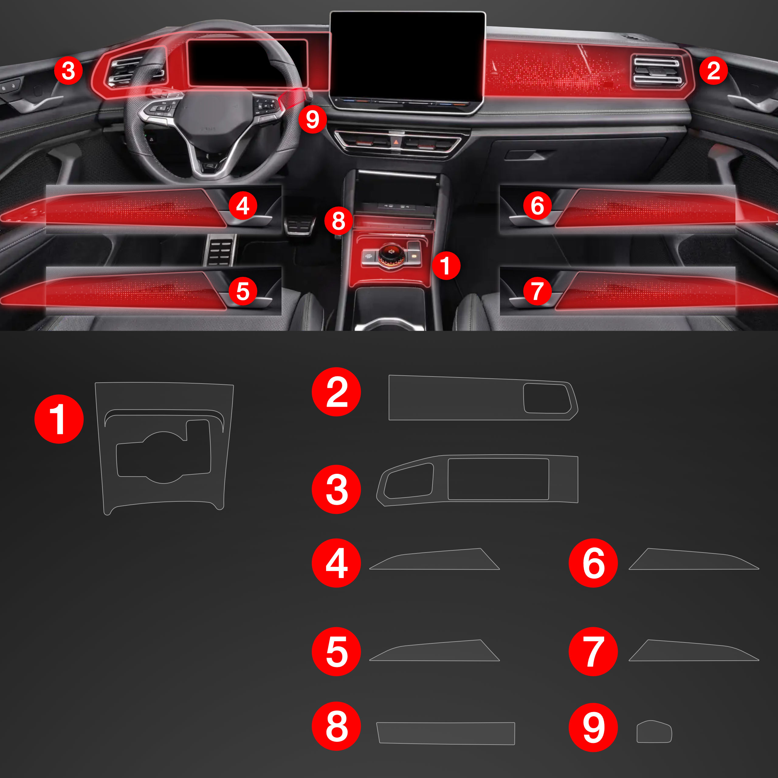 Folia ochronna wnętrza PianoSkin 9v1, VW Tiguan III, 2024- ,