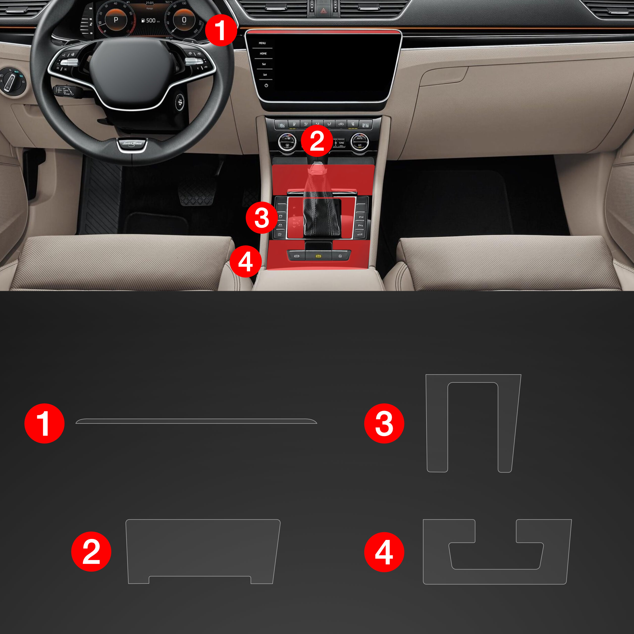 Folia ochronna wnętrza PianoSkin 4v1, Škoda Superb III, 2015-2024