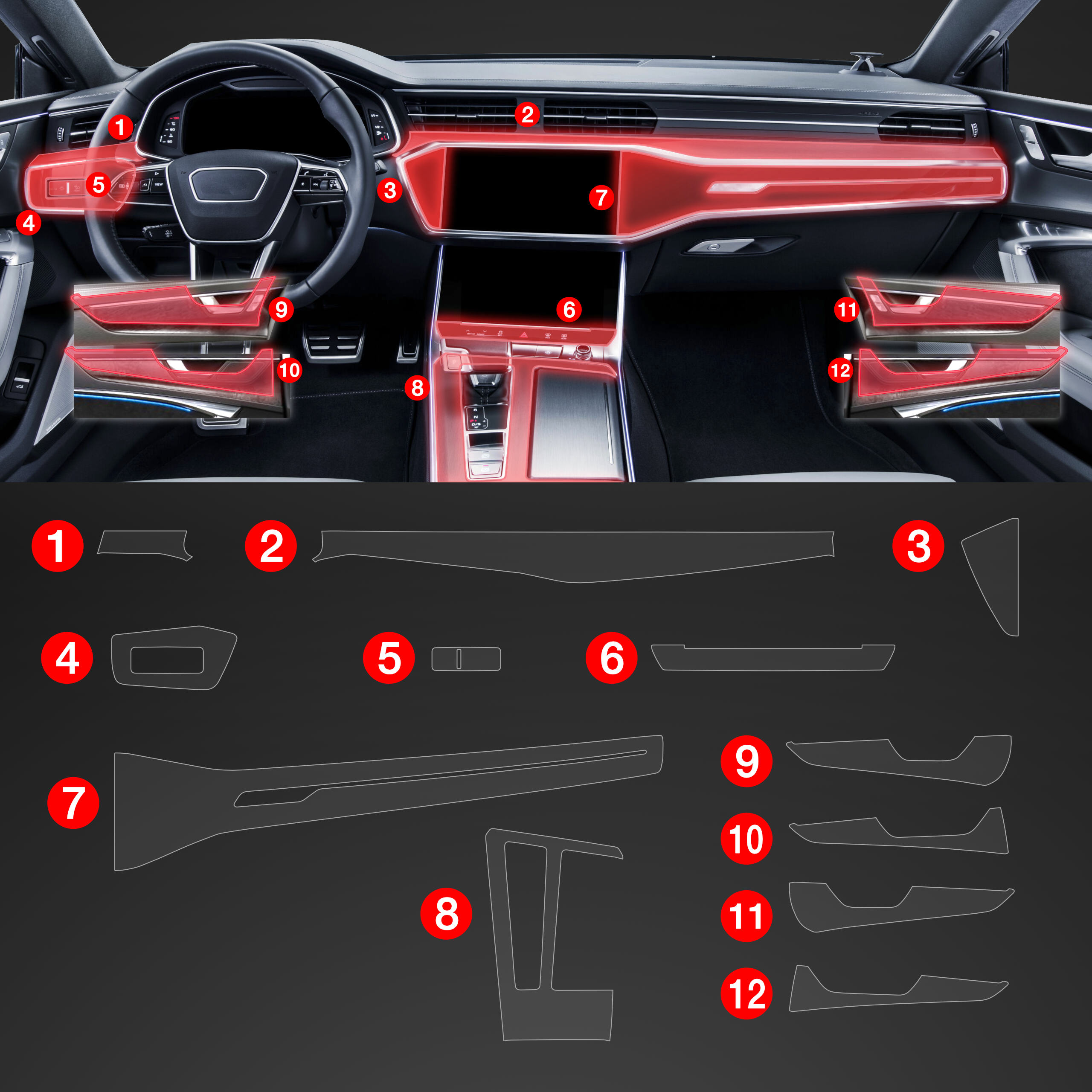 Folia ochronna wnętrza PianoSkin 12v1, Audi A7, C8, 2017- ,