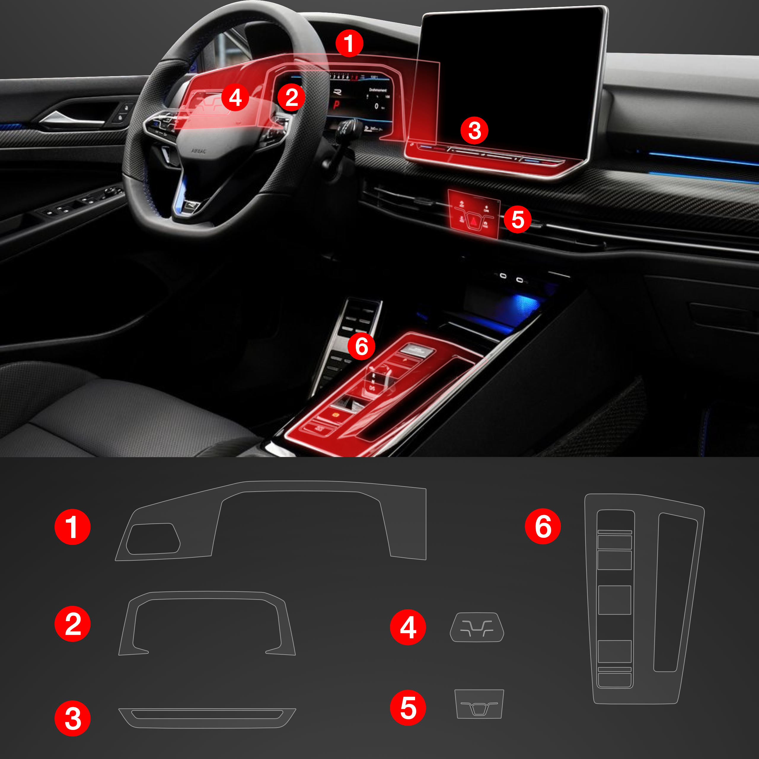 Folia ochronna wnętrza PianoSkin 6v1, VW Golf VIII, 2024- ,