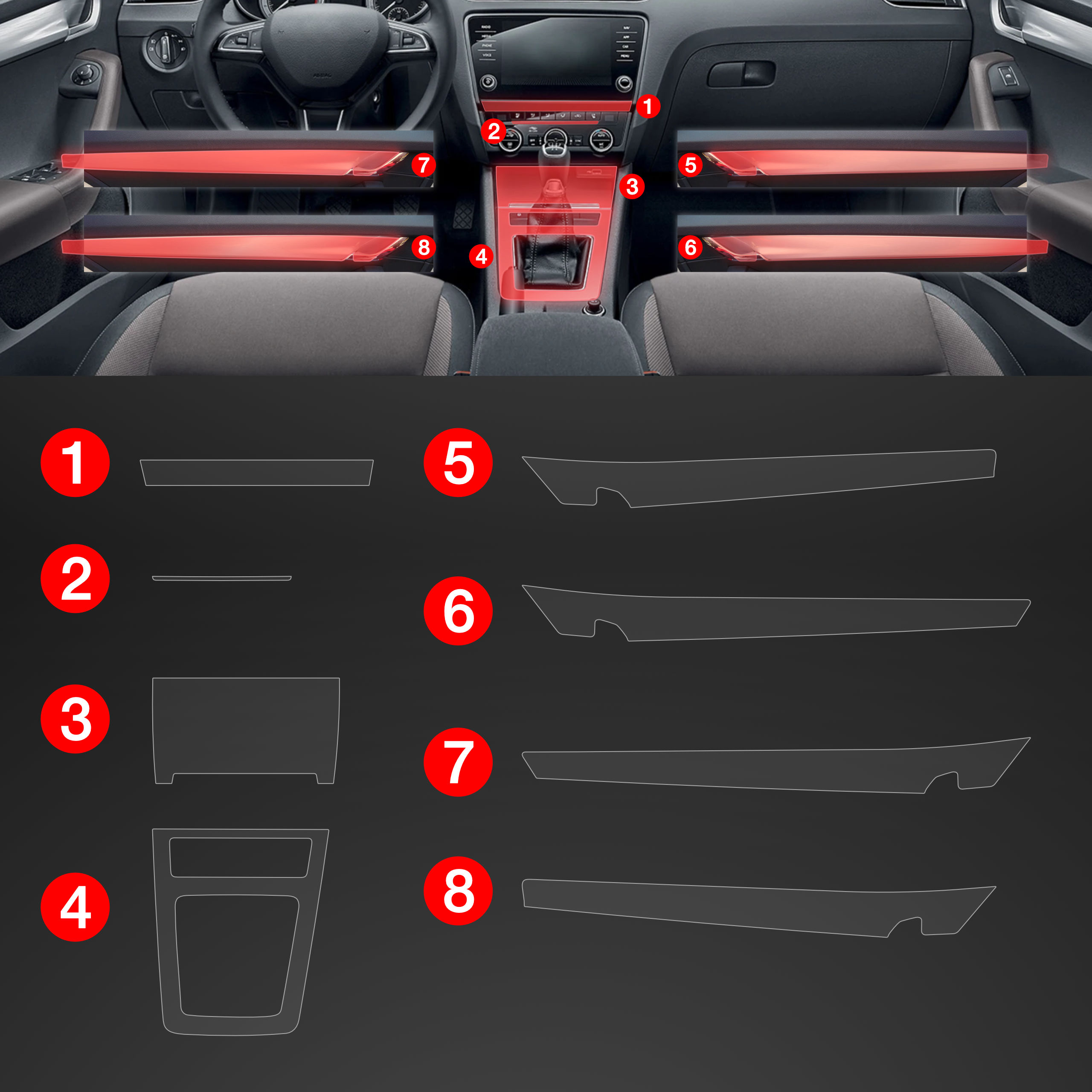 Folia ochronna wnętrza PianoSkin 8v1, Škoda Octavia III, 2017-2020