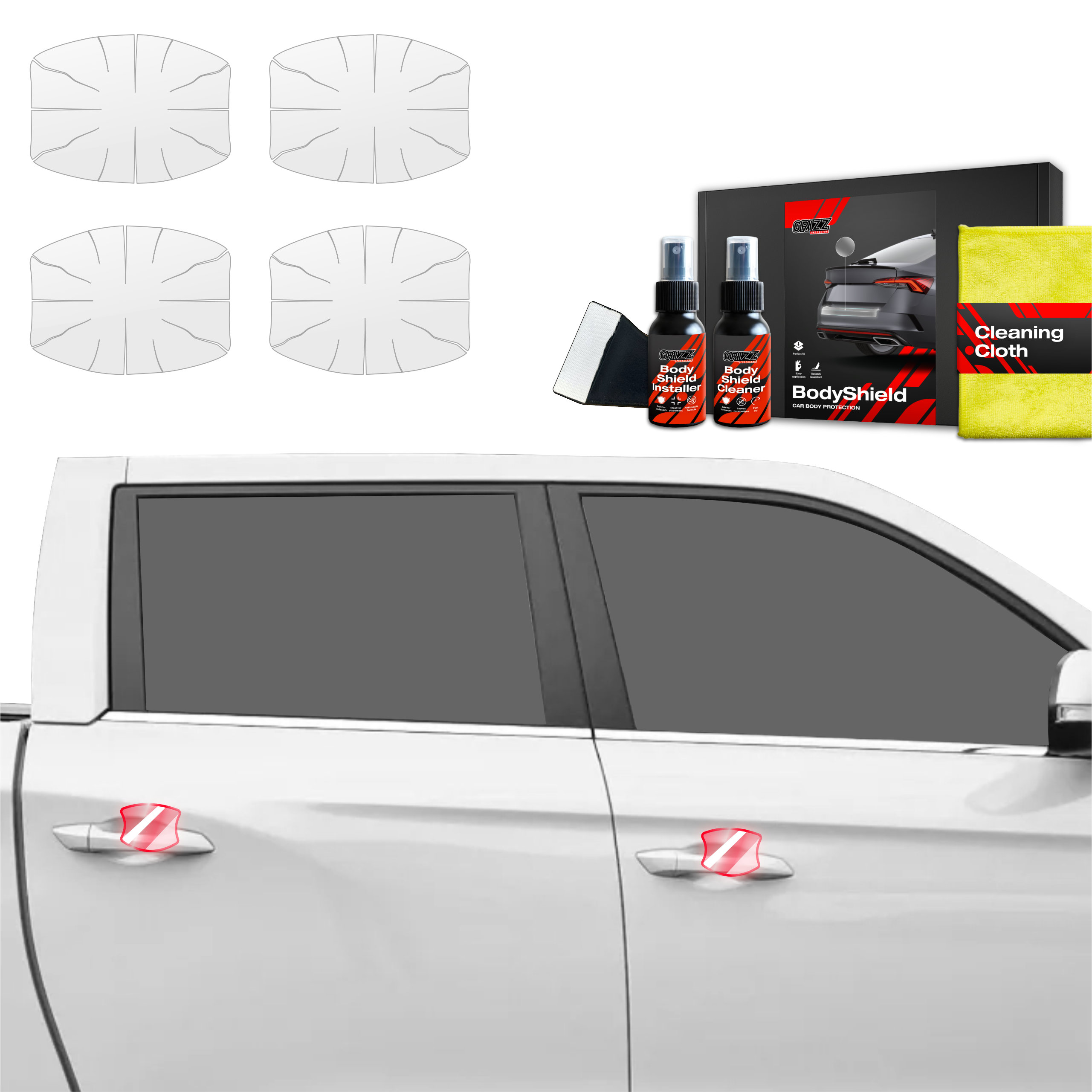 Grizz BodyShield to wysokiej jakości folia ochronna zaprojektowana w celu ochrony lakieru Twojego pojazdu przed uszkodzeniami mechanicznymi i niekorzystnymi warunkami atmosferycznymi. Dzięki wysokiej elastyczności i zdolności do samoregeneracji wypełnia drobne rysy, utrzymując powierzchnię pojazdu w idealnym stanie. Folia jest wycinana na miarę dla konkretnych modeli samochodów, co zapewnia łatwą instalację i perfekcyjne dopasowanie.