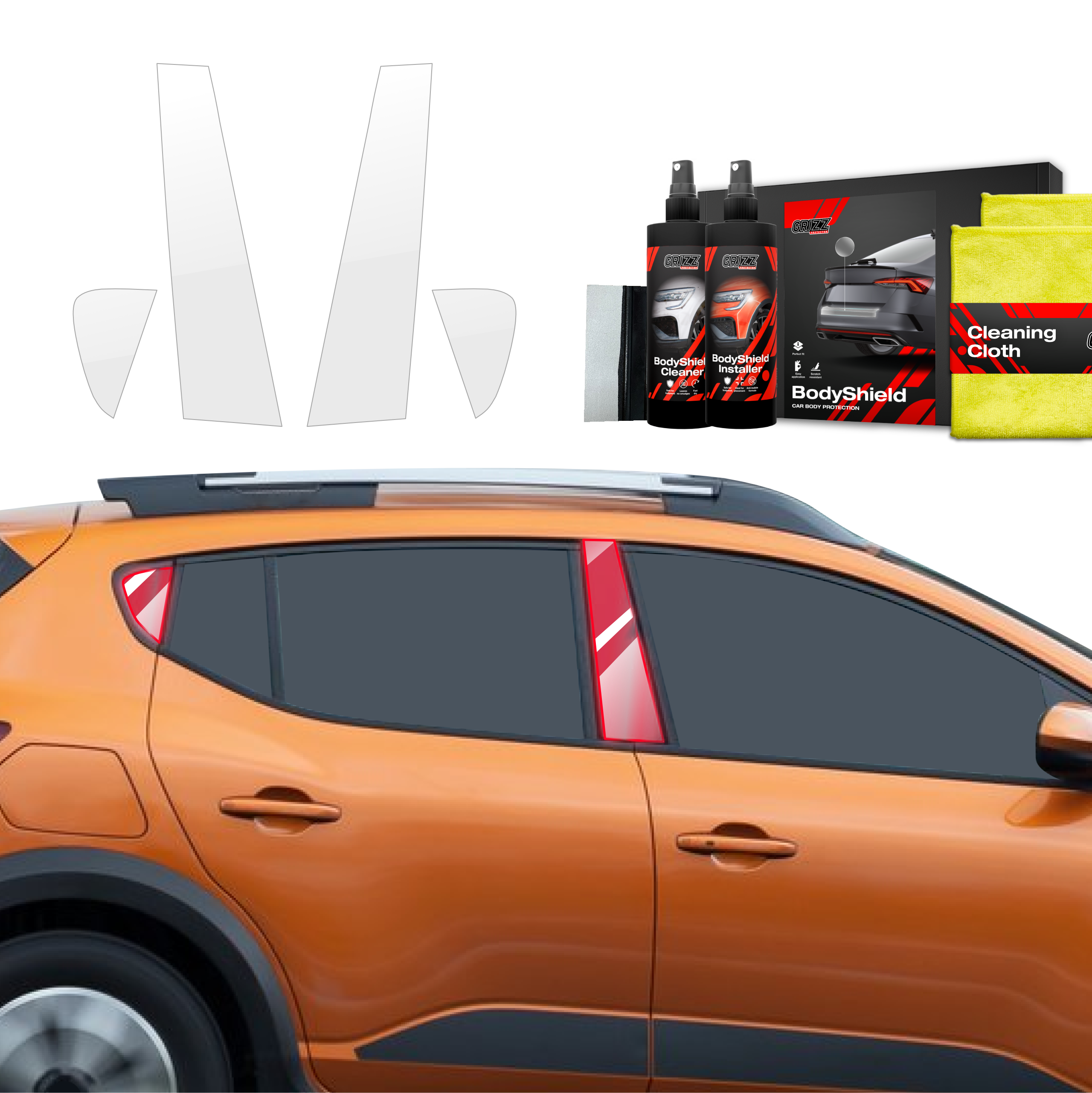 Grizz BodyShield to wysokiej jakości folia ochronna zaprojektowana w celu ochrony lakieru Twojego pojazdu przed uszkodzeniami mechanicznymi i niekorzystnymi warunkami atmosferycznymi. Dzięki wysokiej elastyczności i zdolności do samoregeneracji wypełnia drobne rysy, utrzymując powierzchnię pojazdu w idealnym stanie. Folia jest wycinana na miarę dla konkretnych modeli samochodów, co zapewnia łatwą instalację i perfekcyjne dopasowanie.