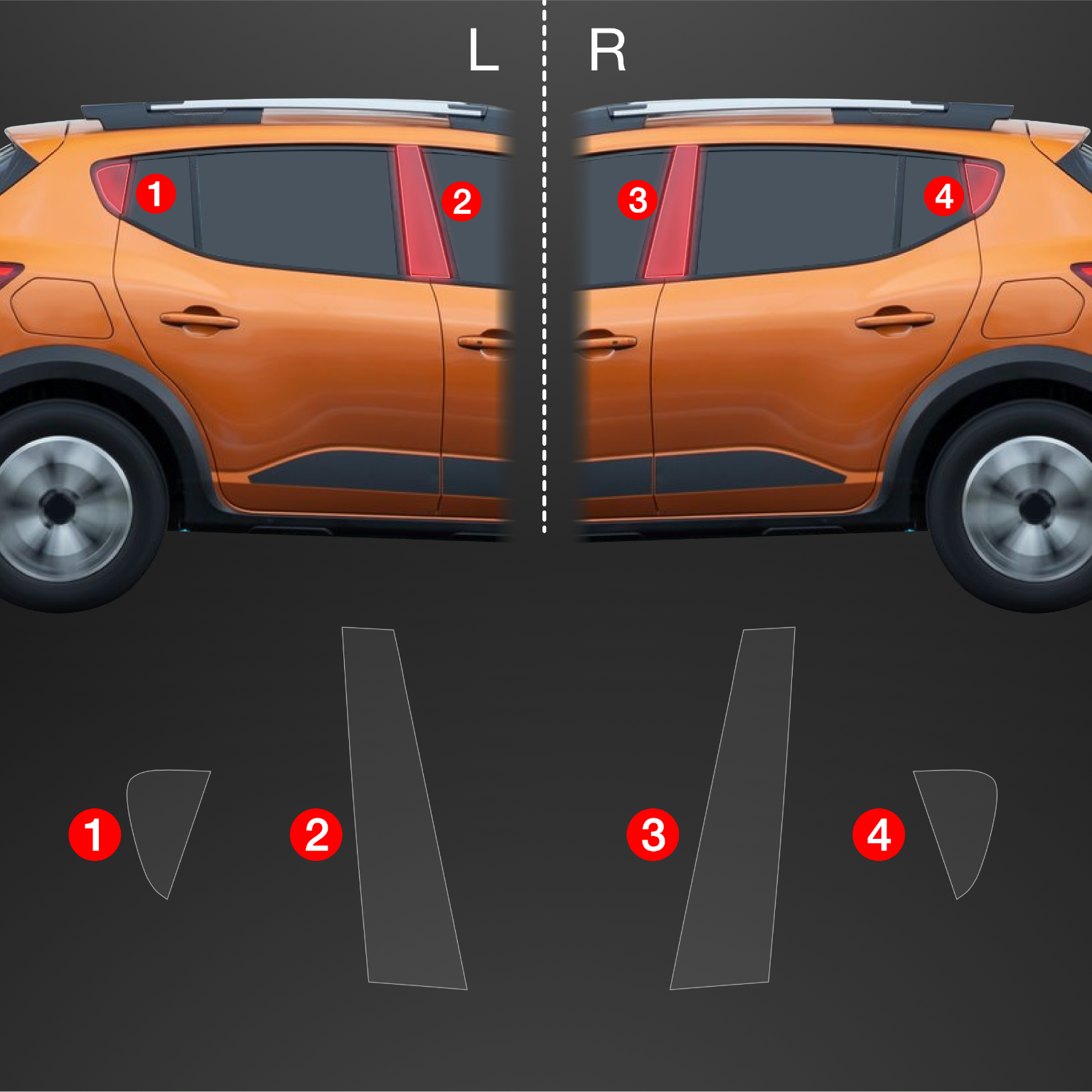 Ochronne folie na słupki, Dacia Sandero III, 2021- ,