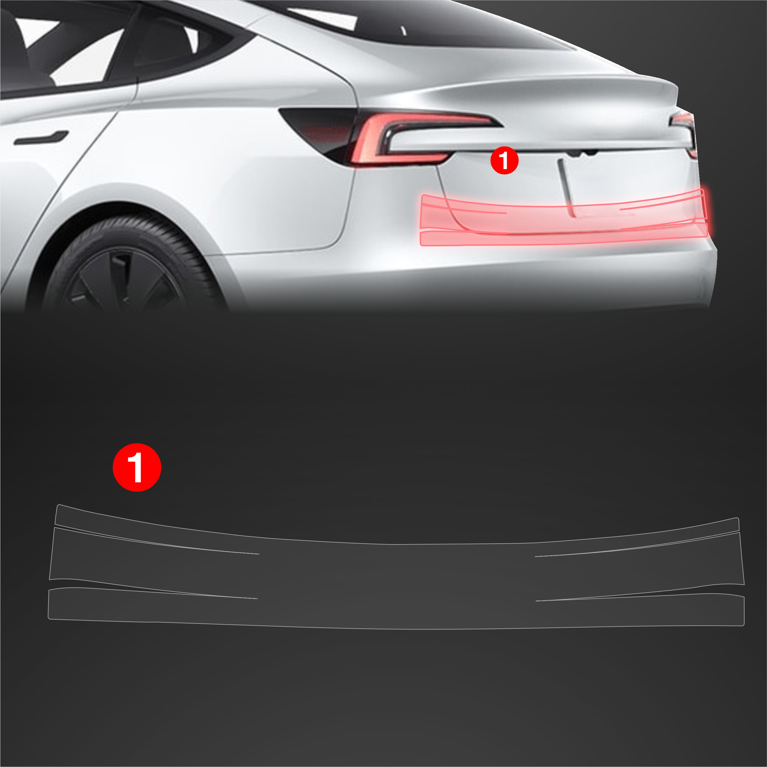 Folia ochronna na tylny zderzak, Tesla Model 3, 2021-2023