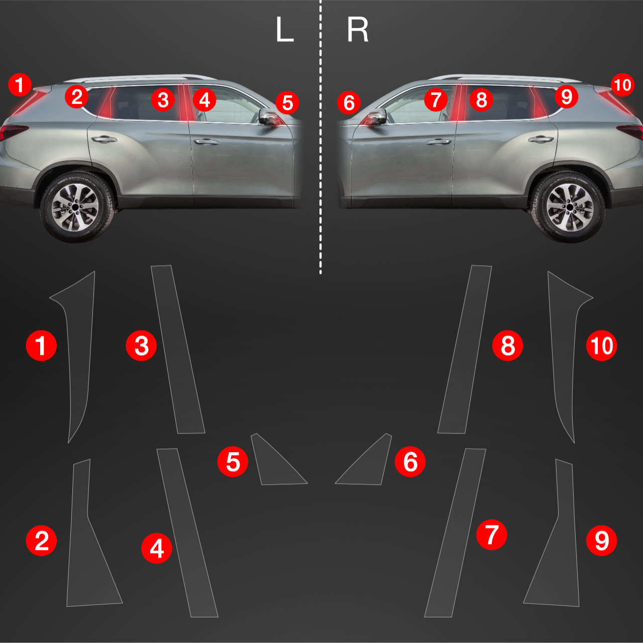 Ochronne folie na słupki, Ssangong Rexton IV, 2023- ,
