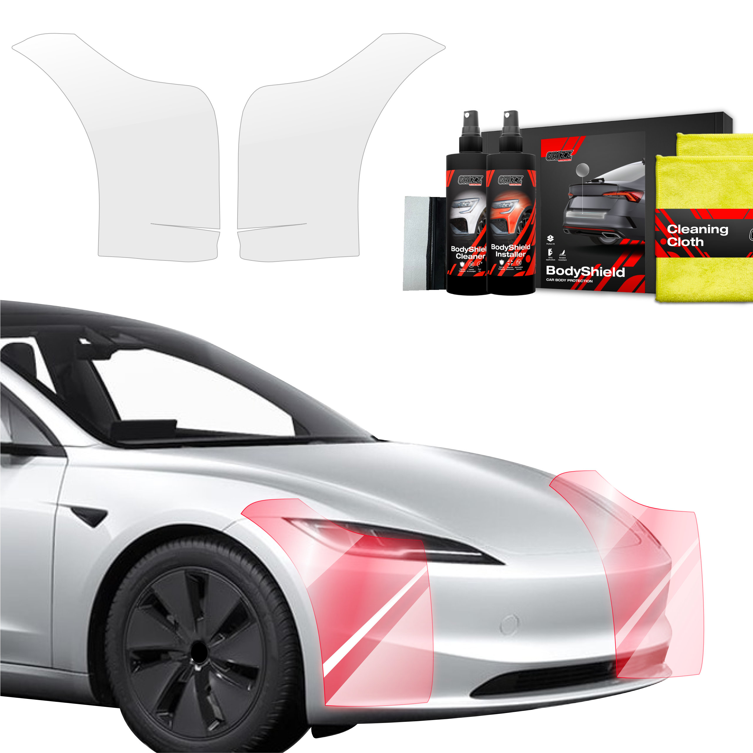 Grizz BodyShield to wysokiej jakości folia ochronna zaprojektowana w celu ochrony lakieru Twojego pojazdu przed uszkodzeniami mechanicznymi i niekorzystnymi warunkami atmosferycznymi. Dzięki wysokiej elastyczności i zdolności do samoregeneracji wypełnia drobne rysy, utrzymując powierzchnię pojazdu w idealnym stanie. Folia jest wycinana na miarę dla konkretnych modeli samochodów, co zapewnia łatwą instalację i perfekcyjne dopasowanie.