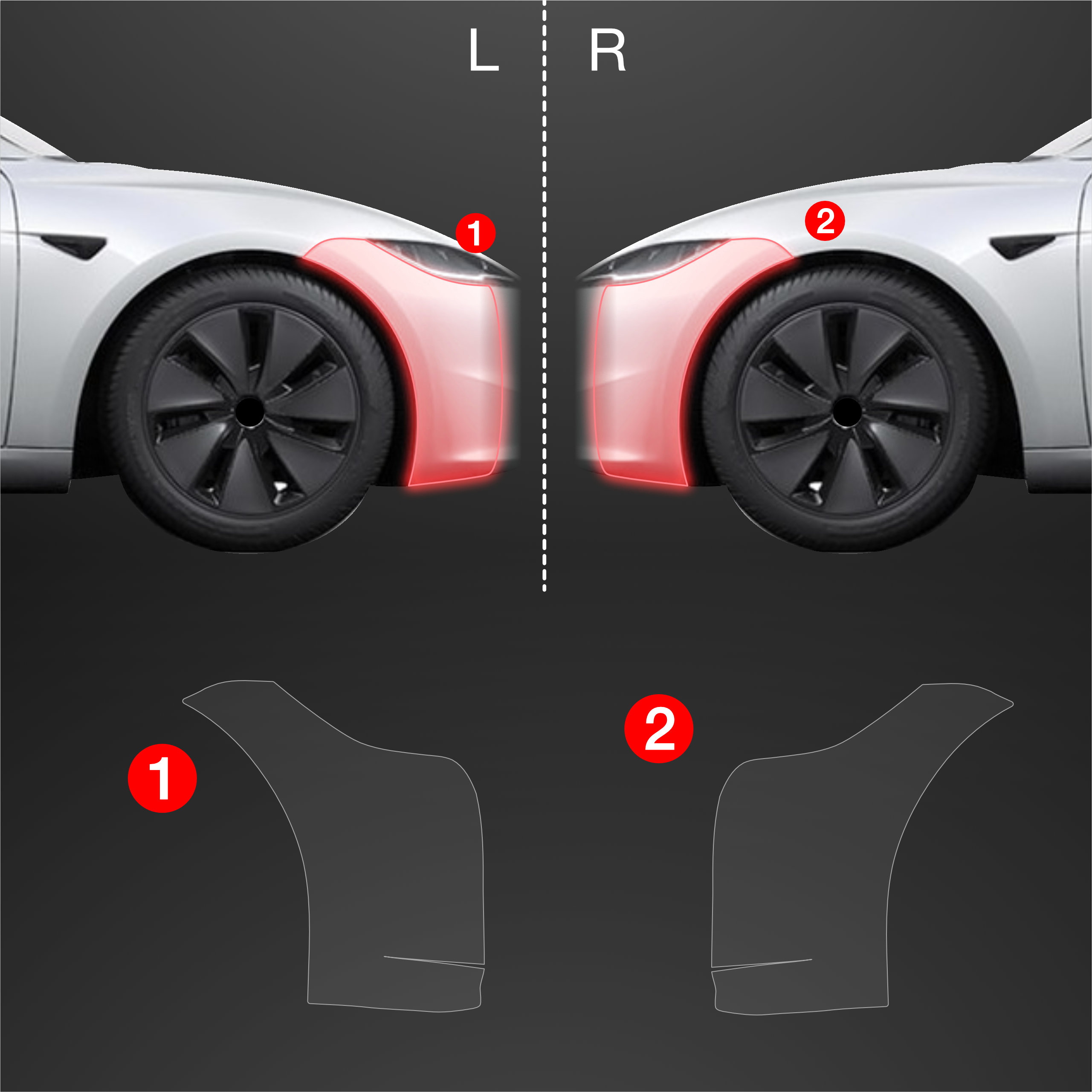Ochronne folie na zderzak, Tesla Model 3, 2021-2023