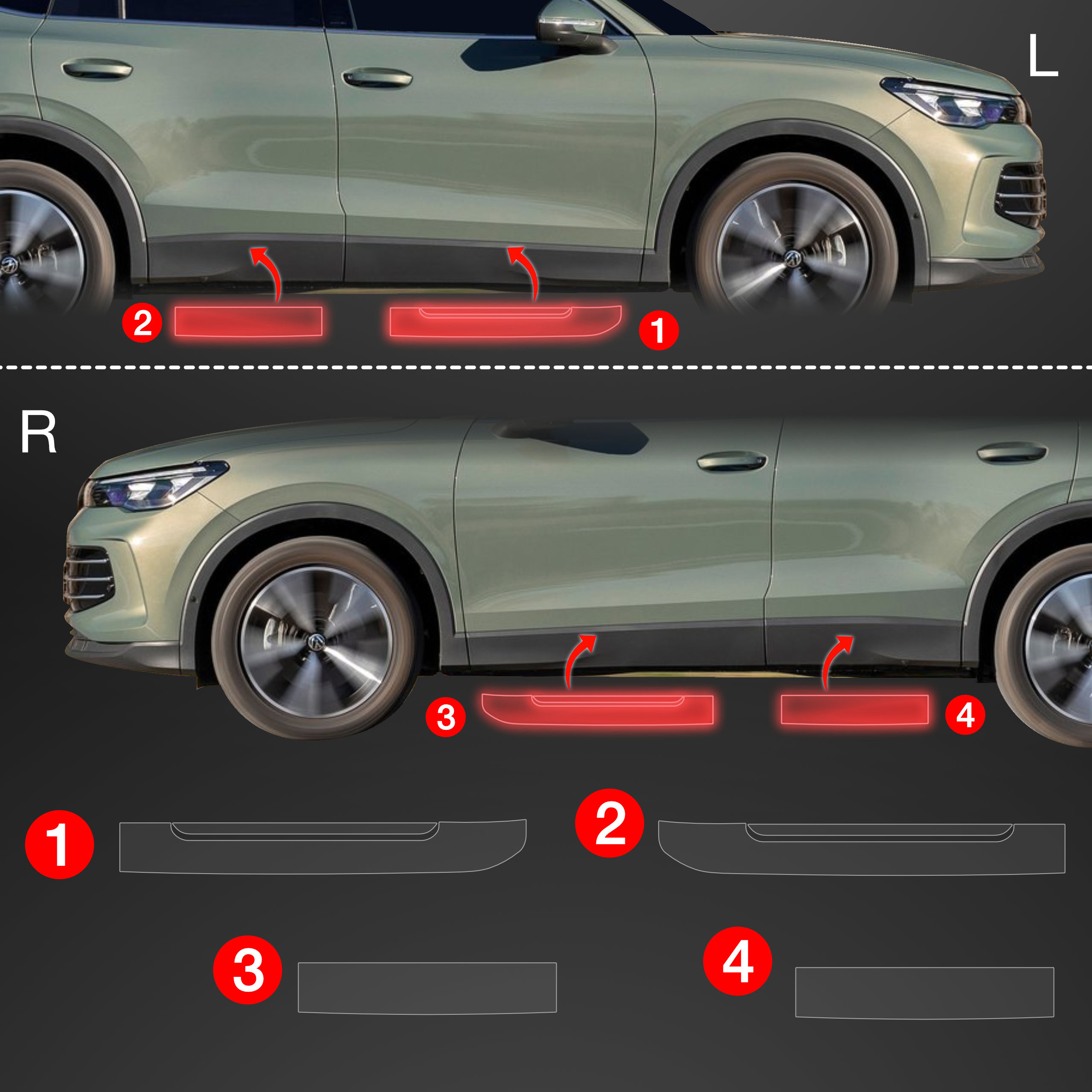 Progowe folie ochronne, VW Tiguan III, 2024- ,