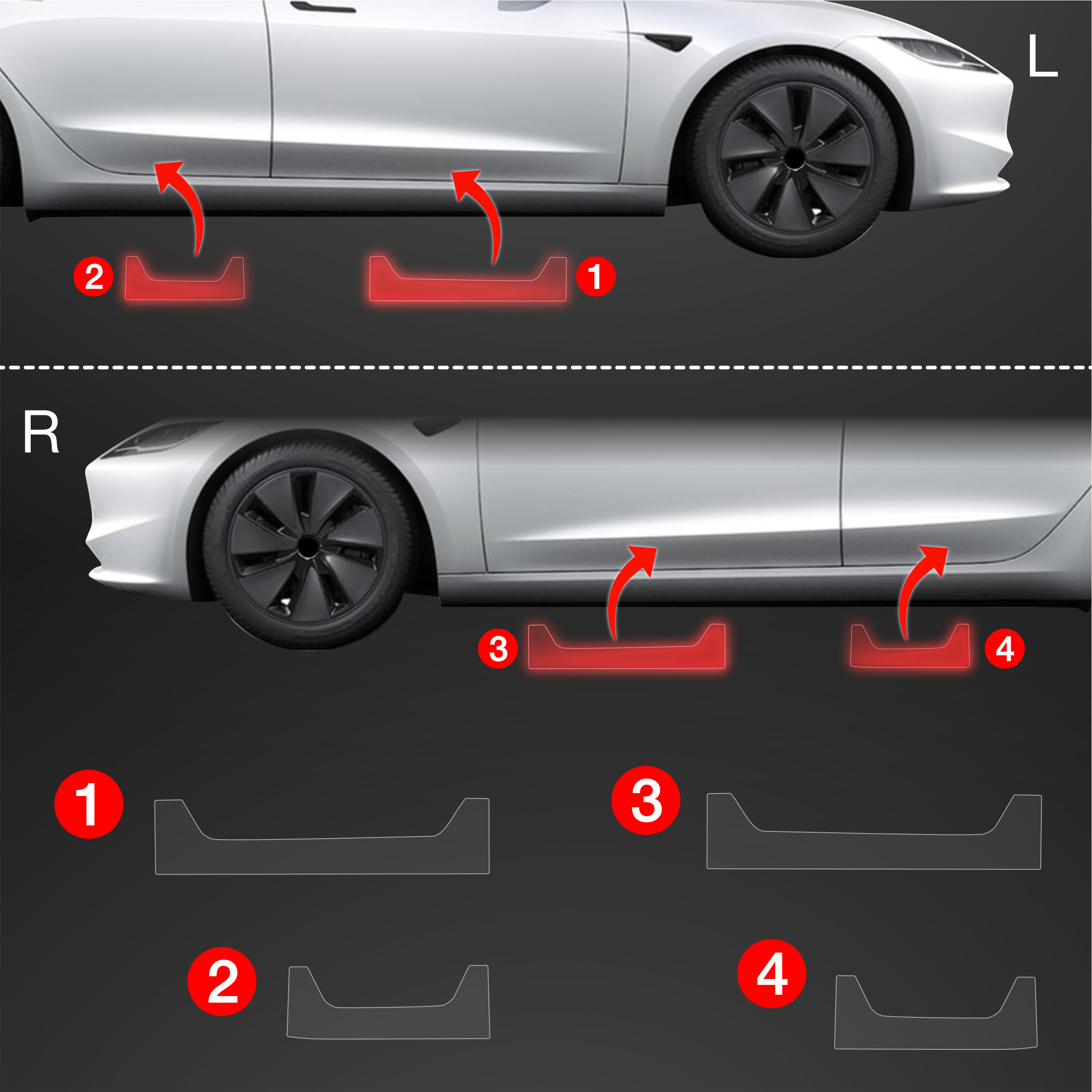 Progowe folie ochronne, Tesla Model 3, 2021-2023