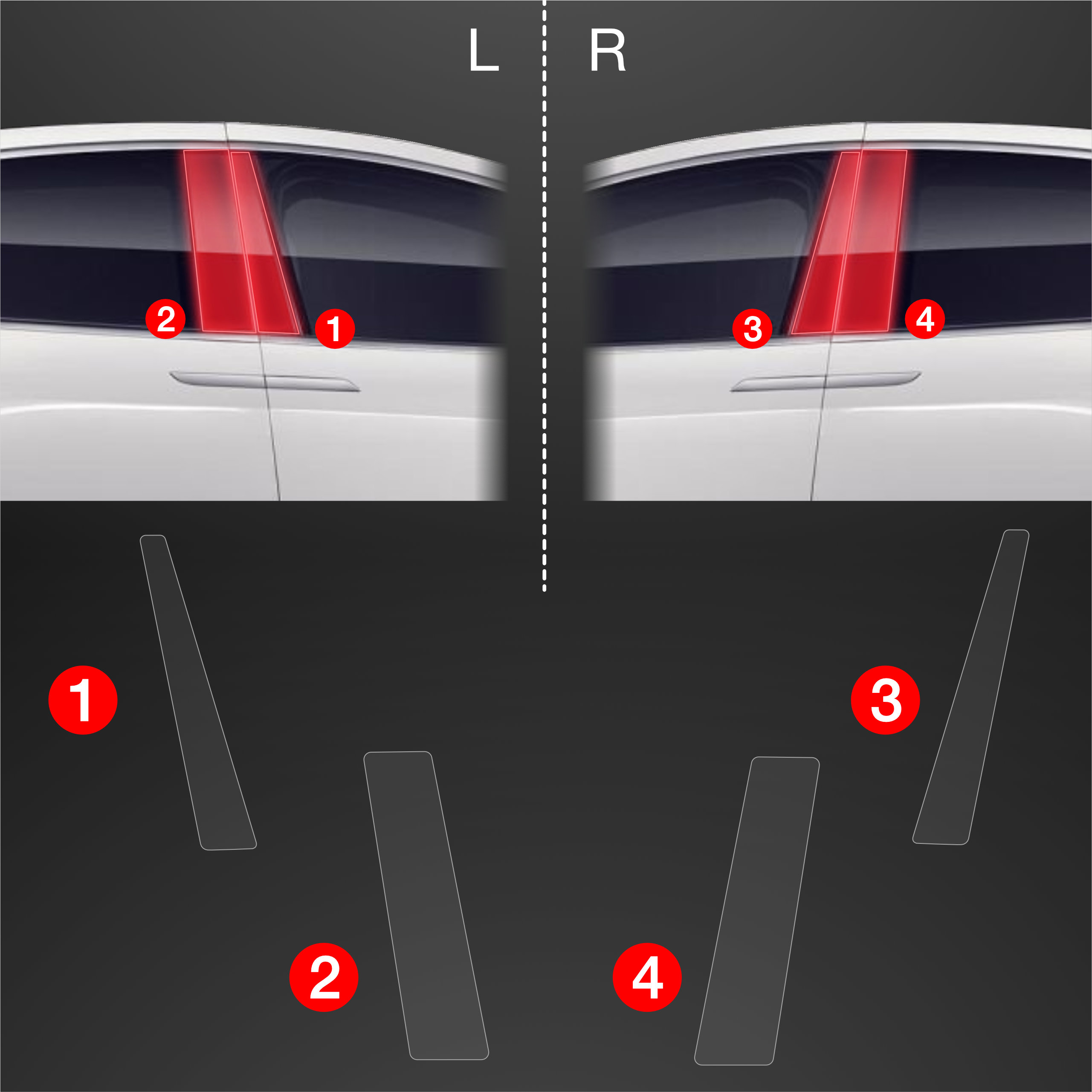 Ochronne folie na słupki, Tesla X, 2021- ,