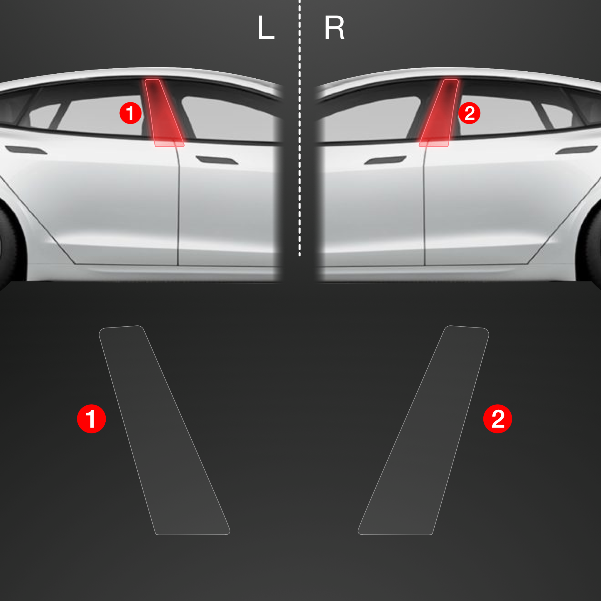 Ochronne folie na słupki, Tesla Model S, 2023- ,