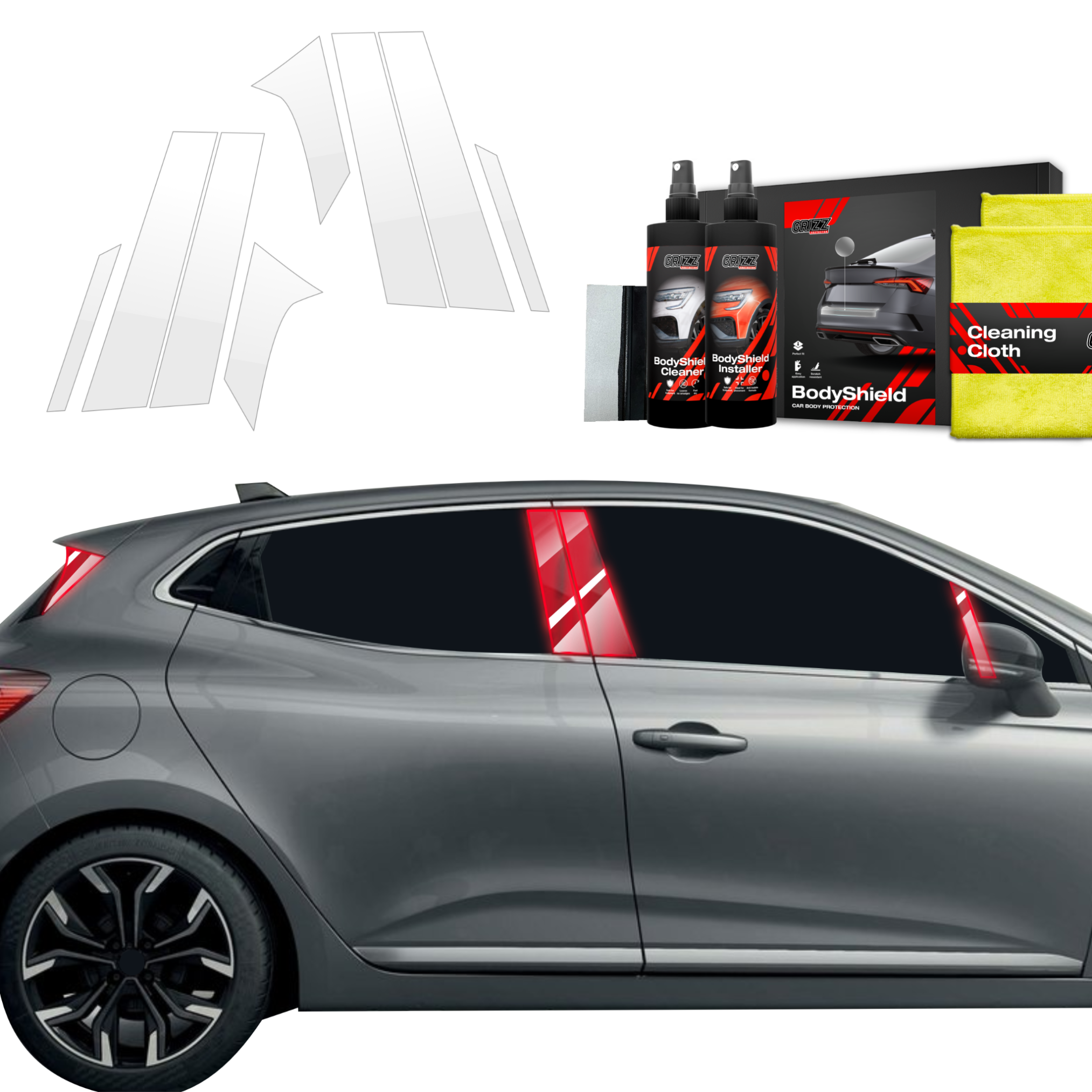 Grizz BodyShield to wysokiej jakości folia ochronna zaprojektowana w celu ochrony lakieru Twojego pojazdu przed uszkodzeniami mechanicznymi i niekorzystnymi warunkami atmosferycznymi. Dzięki wysokiej elastyczności i zdolności do samoregeneracji wypełnia drobne rysy, utrzymując powierzchnię pojazdu w idealnym stanie. Folia jest wycinana na miarę dla konkretnych modeli samochodów, co zapewnia łatwą instalację i perfekcyjne dopasowanie.