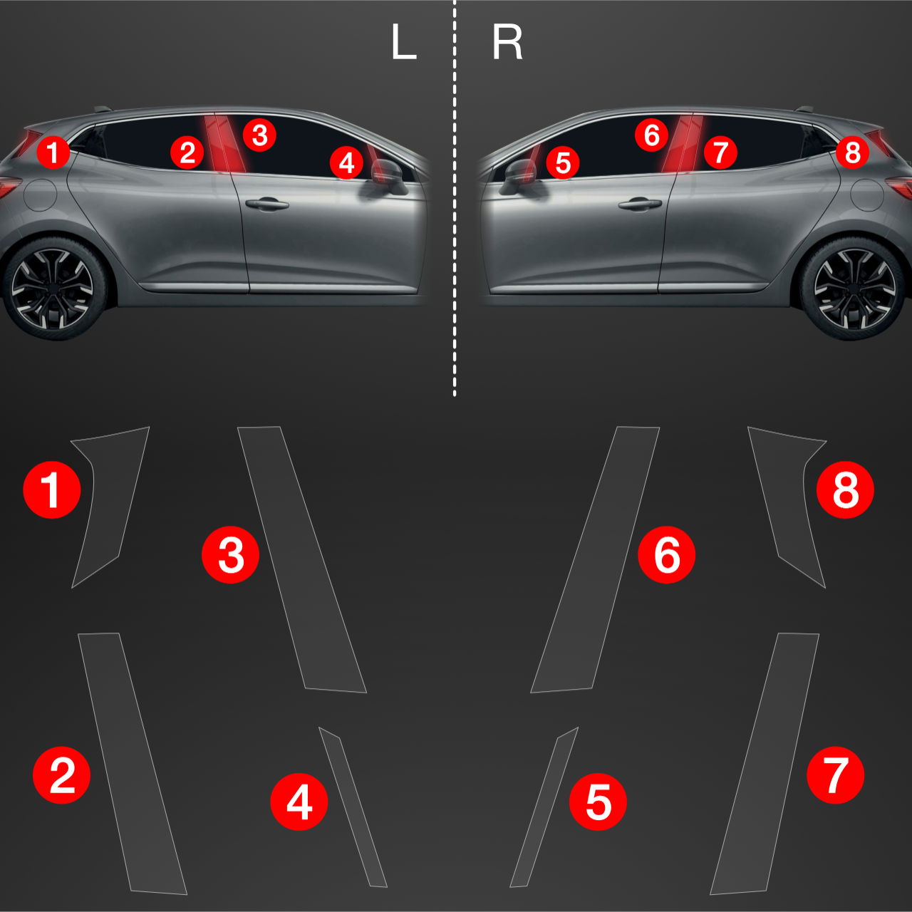 Ochronne folie na słupki, Renault Clio V, 2019- ,